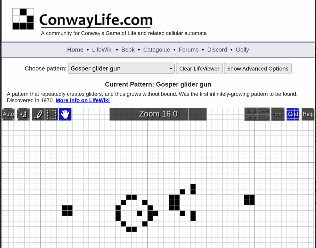 The website ConwayLife.com, created probably some time in 2009, is one of those many websites out there that invisibly hosts active communities that big media sites routinely ignore, the kind of thing that Set Side B carries both a banner and a deep affection for. There was a time where sites like this were a major focus of the World Wide Web, and it still is, even if the wider world fails to notice it. ConwayLife.com hosts a simulator on its homepage, a wiki of concepts, an active forum, a well-populated list of links, and even a Discord.
