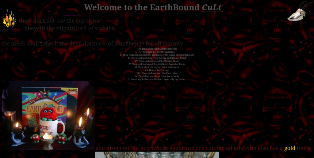 Ah, that’s some quality nonsense right there. Of course it’s densely packed with Earthbound references. The Wayback machine indicates this page (in an earlier form) has been around since May 23rd 2006.
