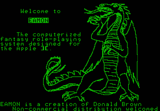 I’m talking about Eamon, an Apple II text adventure/RPG system with ports to other platforms (there was a not much used C64 version, and a PC/MS-DOS version with a bit more uptake), but was biggest on Apple II.
