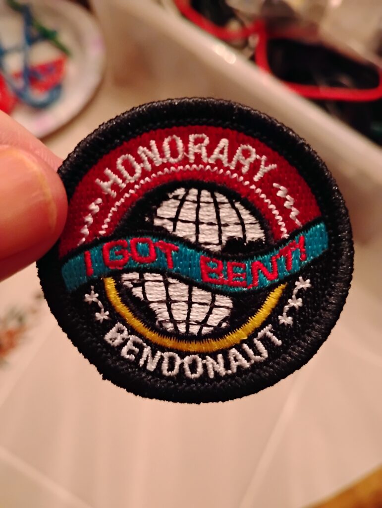 In the story of Blippo+, the planet Blip discovers a “bend in space” that carries their broadcasts to a distant planet, implied to be Earth. At the end of the programming, some of the teenagers of Blip venture into the bend and off to an unknown fate. We don’t get any information on what happened to them, but maybe the existence of this patch implies they made it through after all.