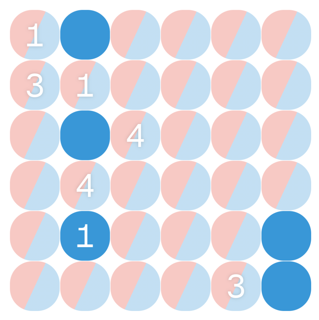 A second webgame in a row, Urjo is a logic puzzle game about choosing which of each space in a grid should be red or blue, with the following conditions: