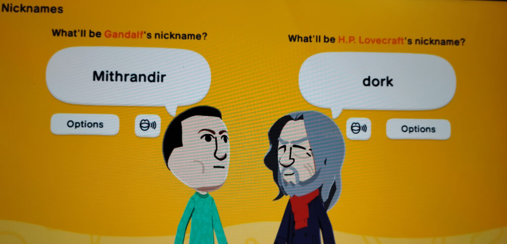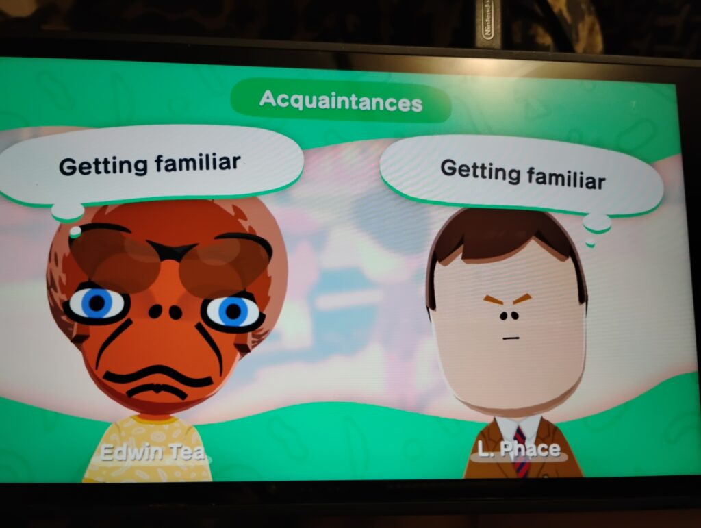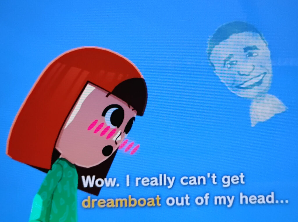 Sometimes when they meet you’ll be asked to give the system a word or phrase for them to talk about, and that’s where the more explicit Mad Lib connection kicks in. Just like official Mad Libs*, Maybe nine times out of ten the jokes will fall flat, but that tenth time is comedy gold. Of course what everyone did, and still does, is make Miis of every celebrity and comic character they can fit into Nintendo’s limited yet oddly useful tools. In my game, I have a Mr. T character, downloaded from the Mii Channel on the Wii so very long ago, laboriously schlepped over to Wii-U (via system import) to Switch (via Amiibos) to Switch 2 (via another system import). Mr. T had a dream his first night in my game, on the isle of Yendor, in which he met three other Miis all with Mr. T’s face.