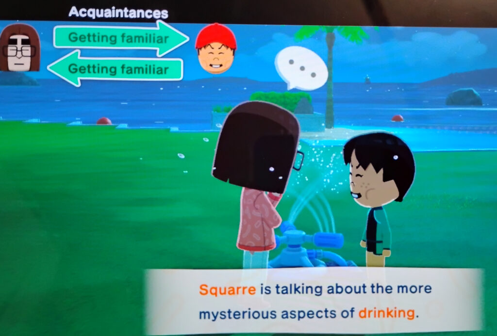 This is the third game in the Tomodachi Life series. The first one was 14 years ago, the original Tomodachi Life for 3DS, got a cult following. It’s kind of Nintendo’s version of The Sims, if the Sims had (very) slightly more self-motivation, no mandatory biological need to fulfil, and an emphasis on weirdness. The second game, the sorely-missed Miitomo, was a free-to-play mobile game that also served as an instant messenger, but it hit sadly at a time when the old style of instant messenger apps were dying out, and lasted just over two years. It was dead in the water long before it closed.