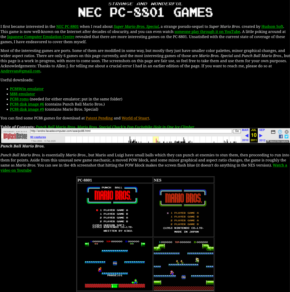 Strange and Wonderful NEC PC-8801 Games (Wayback Machine)
